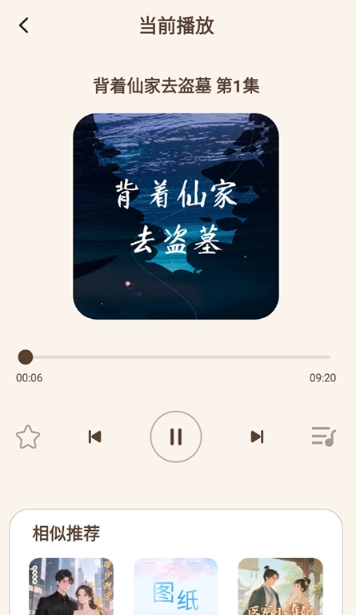 2、找到喜欢的书籍之后,点击书籍封面进入播放页,自动播放第一集