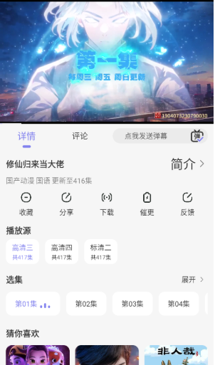 2、任意播放一部动漫,以“修仙归来当大佬”为例