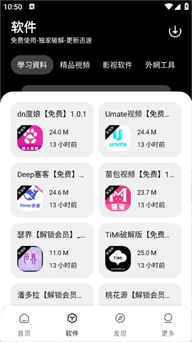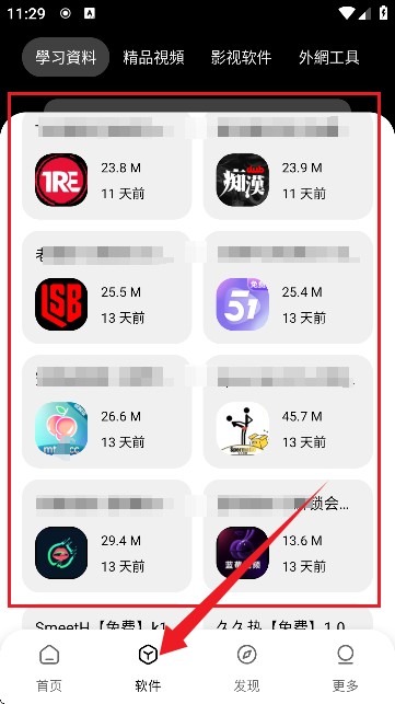 2、进入“软件”页面,汇集了众多的软件资源,包含了学习类、影视类以及小说类等