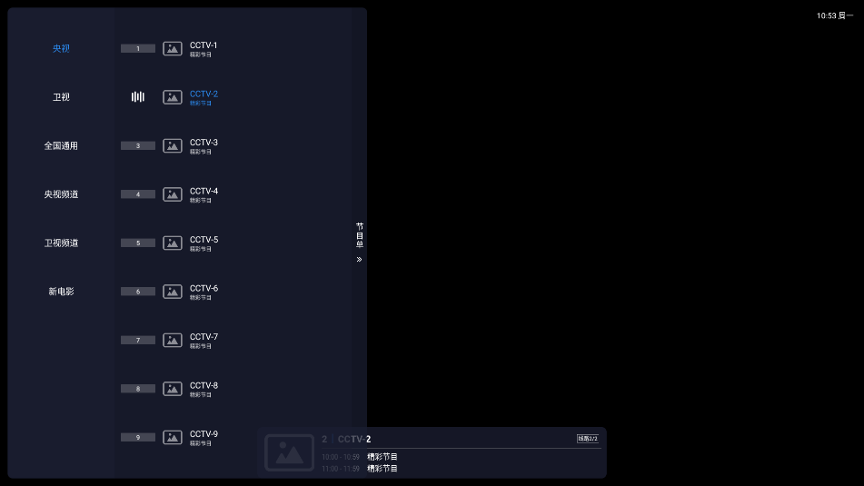 2、或者点击左侧,可以唤醒频道栏,切换喜欢的频道
