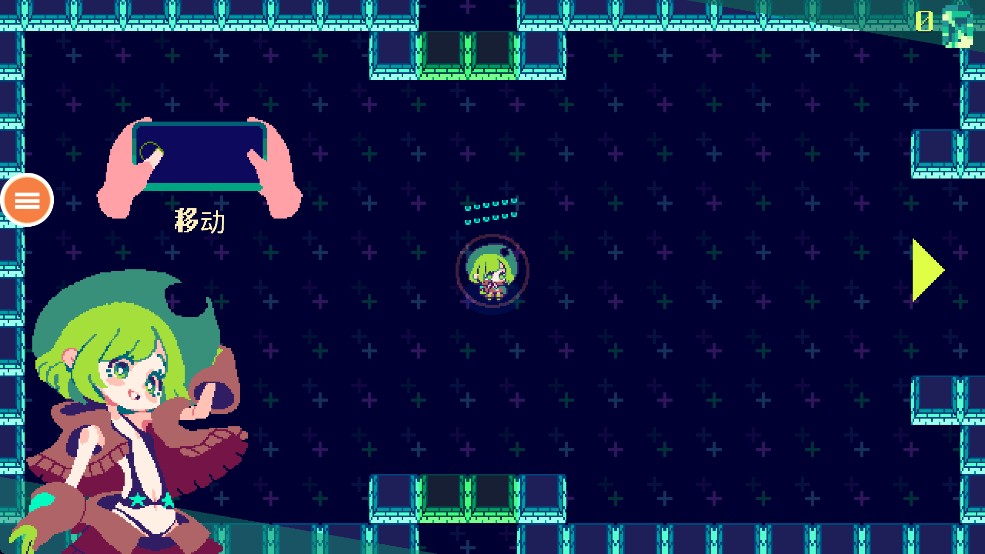 1、首先在本站下载安装好可爱像素女孩游戏,进入主界面,会提示让你滑动屏幕移动