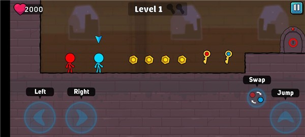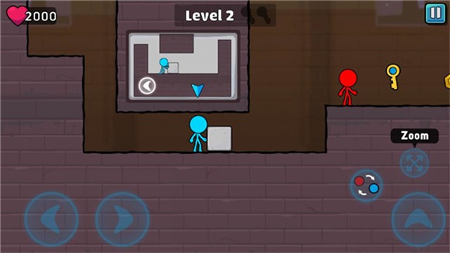 红蓝火柴人2手机版带来趣味的冰火人系列闯关游戏,玩家在游戏中需要帮助红蓝火柴人不断地度过难关,各自选取自己颜色的钥匙,一起抵达最后的大门!
