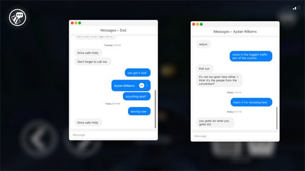 沉浸在游戏世界中,在昏暗的环境中驾车,和NPC通过聊天工具进行交流,得到更多的线索内容,从而让自己脱离这里。