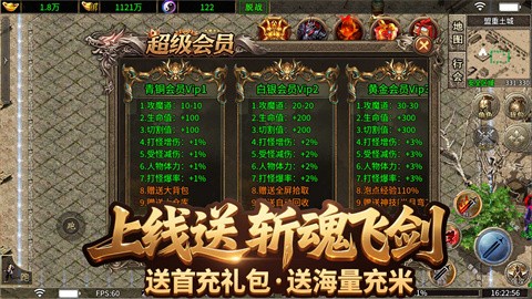 1、诚意:上线送[首充礼包],送[福利大厅],送[斩魂飞剑]