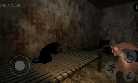 3、接着就能来到废弃宅邸,左侧按键控制角色移动,右侧转动视野,还能开启蹲下、奔跑功能。